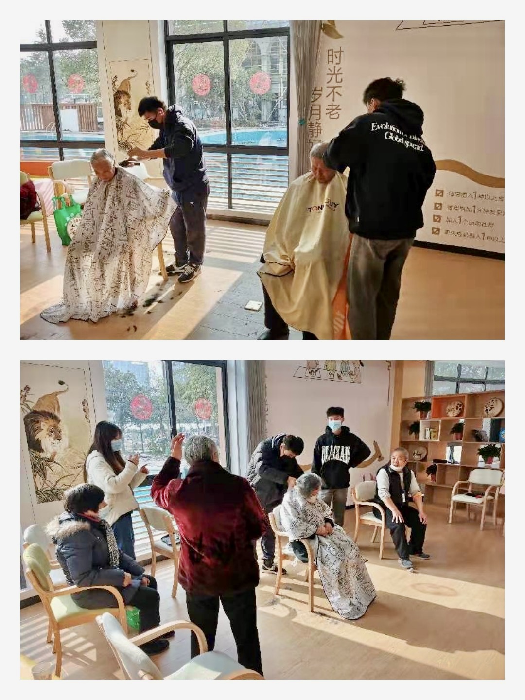 試營(yíng)業(yè)當(dāng)天,望江苑未來(lái)社區(qū)居家養(yǎng)老服務(wù)站開展愛心理發(fā)活動(dòng),讓老人們不出社區(qū)就能享受到暖心的便民服務(wù),發(fā)型師們的專業(yè)技術(shù)得到社區(qū)老人們的一致好評(píng)。此外,養(yǎng)老服務(wù)站還開展了手工DIY活動(dòng),讓老人們學(xué)會(huì)了使用樹葉花草制作精美的掛畫裝飾。