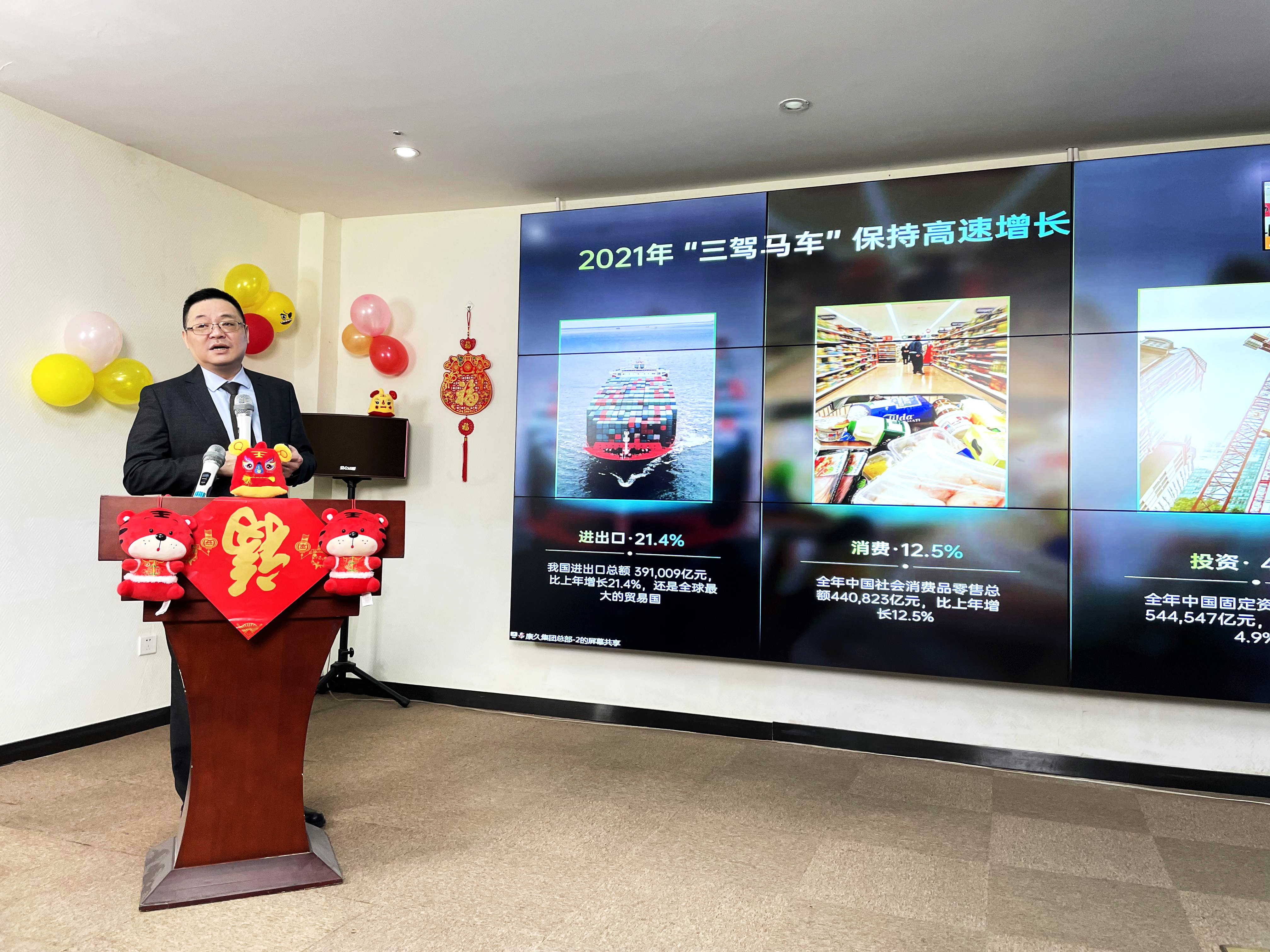 康久集團(tuán)董事長耿海波發(fā)表了以“贏戰(zhàn)”為主題的講話。耿董事長首先感謝了康久全體員工長期的辛勤付出及貢獻(xiàn),同時(shí)祝福所有員工及家屬新年快樂,虎年吉祥安康。