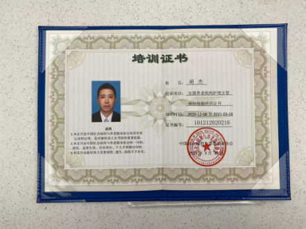 作為一名年輕的養(yǎng)老專職人員,我時(shí)刻不忘記學(xué)習(xí),希望用專業(yè)的知識(shí)來服務(wù)老人。通過努力,2021年3月18日我通過學(xué)習(xí)考核獲得了全國養(yǎng)老機(jī)構(gòu)護(hù)理主管崗位技能培訓(xùn)證書。