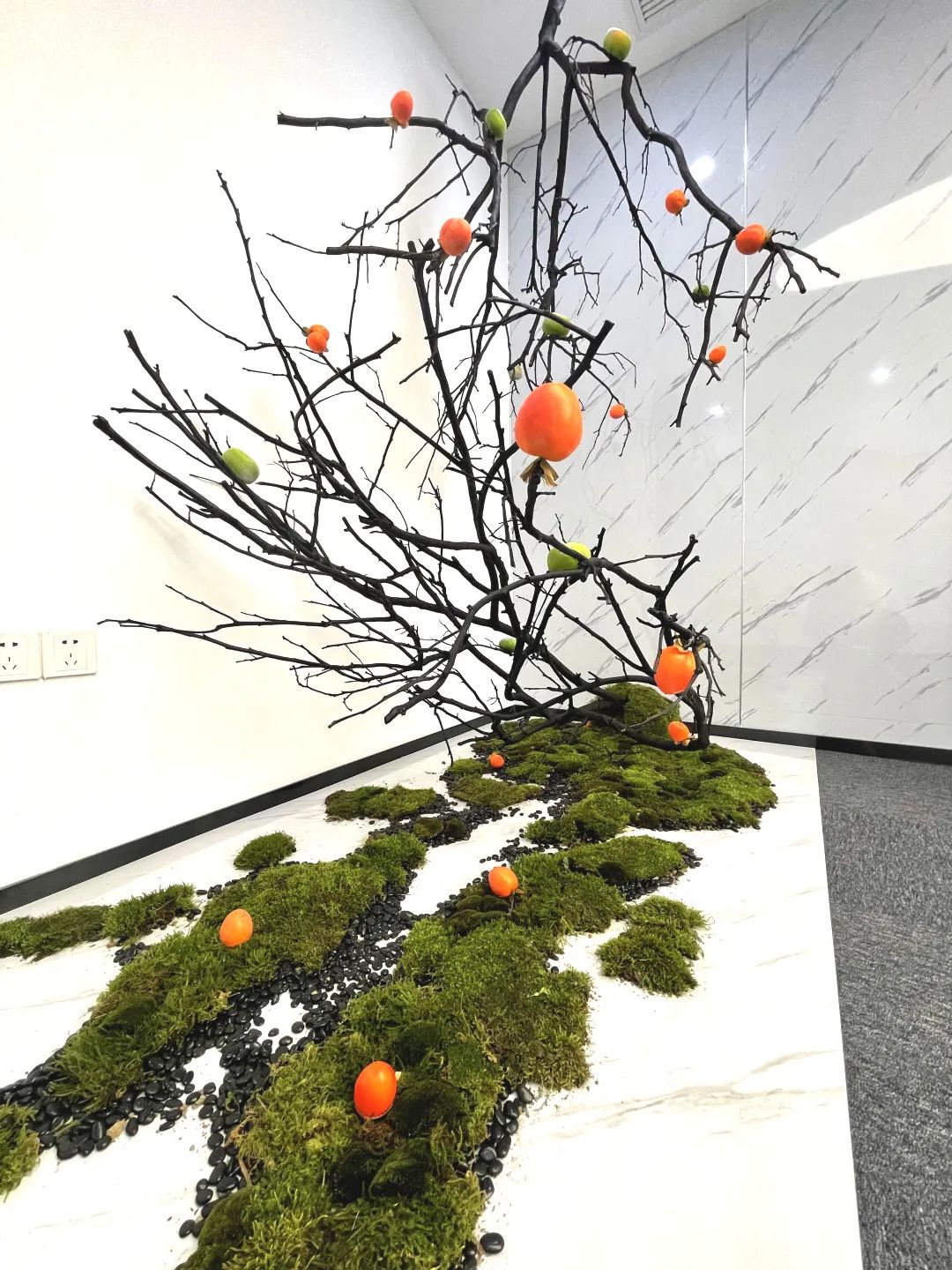 大理石紋路墻面搭配集團(tuán)logo,前臺簡約又大氣,綠植的點(diǎn)綴更是增添了朝氣和活力。